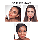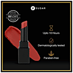The lipstick of your fantasies is finally here. Get ready to applaud utter gorgeousness itself - SUGAR Nothing Else Matter Longwear Lipstick. We bring you the rich experience of a lip colour that has a smooth application, intense water resistance, premium opaque matte finish that doesn't feel heavy on the lips and plush comfortable wear. Long-lasting and delivering utmost perfection to your pout are the 34 extraordinary shades to complement every mood, every day. The range includes 12 limited edition shades that add oomph to any look. For the woman who likes to live her life on her own terms and who doesn't get bothered by the world even a tad bit - This. Is It! And, nothing else matters. Own the must-have that is Rust Have. The gorgeous subtle burnt red brings about the bold and vivacious in you.