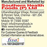 Manufactured & Marketed by: Southern Health Foods Private Limited, UthandikandigaiVillage, Ponneri Post & Ponneri Taluk, Chennai 601204, India