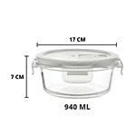 Femora Borosilicate Glass Food Storage Container - Round Shaped With Air Vent Lid, For Home & Office Use, 940 ml (1 pc)