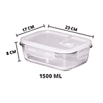 Femora Borosilicate Glass Food Storage Container - Rectangle With Air Vent Lid, Microwave Safe, For Home & Office, 1.5 L (1 pc)