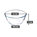 Femora Borosilicate Glass Mixing Bowl - Microwave Safe, For Serving, Storing, Baking, 400 ml (1 pc)