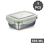 Femora Steel Container/ Storage/ Lunch Box With Lock Lid - Rectangle, Airtight, Leakproof, Unbreakable, Silver, 550 ml ( 1 pc)