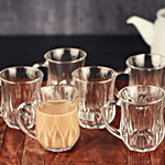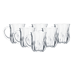 Femora Glass Tea Cup/ Mug - Aqua, Clear, For Serving Hot & Cold Beverages, Small Serve, 145 ml ( Set of 6)
