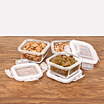 Femora Borosilicate Glass Mini Food Storage - Square, Airtight, Microwave Safe, 180 ml ( Set of 3)