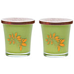 Yera Storage Jar - With Metallic Lid, Golden Foil Printed, For Multipurpose Use, Lemon Green, 675 ml (Set of 2)
