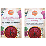 The beetroot thogaya chatni has a mellowed sweetness with some heat coming from the chilis. The lentils, coconut and imli add in a lot of their flavors. Beetroots are high in iron, immune-boosting vitamin c, fiber and essential minerals. It is low in fat and is packed with powerful antioxidants. Beets are said to be good for heart health. Beetroot chutney is an easy way to include beets in your diet. Organic roots instant food chutney packet is free from any artificial preservatives, colors and flavors. Made using seasonal, fresh and flavorful organic vegetables and ingredients they will be a perfect complement to all your meals and snacks. We don't add excess salt, msg or chili to hide the authentic flavors of the ingredients. We use safe and sustainable ingredients sourced directly from farmers across India. With organic roots products, you get nutrition at a convenience. After adding water the thick versatile chatani / chatni can be enjoyed with crackers, rice, idli, besan chilla, dosa, appam, puttu, pakodas, upma, uttapam, khakra, dhokla, chapati & roti or roll varieties. Can also be used as a sandwich spread or a dipping sauce for veggies. Can easily replace sauces/ketchups. Vegan and gluten-free. Authentic taste & ready instantly. Full of nutrition. Finger licking flavours enhance any meal. Why consume artificially flavored and preserved products with zero nutritional value and full of msg? With organic roots products, you get wholesome nutrition at convenience without compromising on the taste. You don't have to spend hours preparing healthy chutneys for your family. Just open organic roots chutney packets and enhance any meal. Ideal for both the old and young in the house, give it to your kid or your family for daily health and nutrition dose.