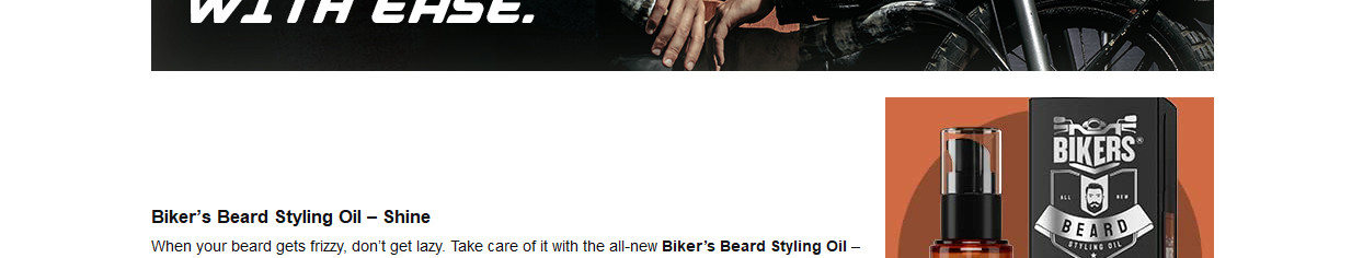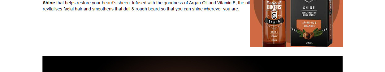 Biker's beard styling oil-shine is crafted for men who like to style their beards with a shiny look. This beard oil is infused with the goodness of argan oil and vitamin E. This formula will give you the beard you deserve. Wear your beard with pride.