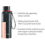 The Borosil Hydra Trek Stainless Steel Bottle can be the perfect companion for your on-the-move lifestyle. It has an insulated double-wall vacuum with a copper coating to maintain optimum temperature, and the sleek black colour will add to the aesthetics of your look. The condensation-free exterior helps to avoid seepage in your bag and the bottle is made from 100% food-grade and rust-proof steel that helps add strength to the bottle. Explore Borosil's full range of lunch boxes, flasks and glasses.
