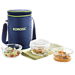 Borosil Borosilicate Glass Lunch Box - Safe Office Tiffin, Blue, Transparent, 240 ml ( Set of 3)