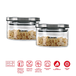 Borosil Classic Glass Jar - For Storing Spices, Condiments & Eatables, Clear, 300 ml (Set of 2 )