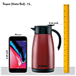 Borosil Tea Pot - Stainless Steel, Vacuum Insulated, Red, 1 L (1 pc)