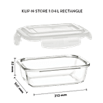 Borosil Klip N Store Glass Storage Container - With Airtight Lid, Microwave Safe, Rectangular, Clear, 1.04 l (1 pc)