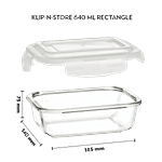 Borosil Klip N Store Glass Storage Container With Air-Tight Lid - Microwave Safe, Rectangle, Clear, 640 ml (1 pc)