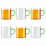 Borosil Vision Tea-N-Coffee Mug Set - Glass, Green Handle, Microwave Safe, 190 ml ( Set of 6)