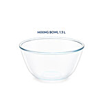Borosil Glass Mixing/Serving Bowl With Lid - Oven & Microwave Proof, Clear, 1.3 L (1 pc)