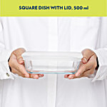 Borosil Borosilicate Glass Baking Dish With Lid - Square, Microwave Safe & Oven Safe, 500 ml (1 pc)