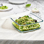 Borosil Square Glass Baking Dish With Lid, 800 ml, Microwave Safe & Oven Safe, 1 Pc