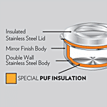 The Stainless Steel Insulated Idli Server is a perfect buy for all the idli lovers. Made from a double wall of insulated stainless steel, this dish will ensure you get hot and fresh tasting food everytime. The materials used in the dish make it long lasting and durable and you can use it for other purposes too like storing rotis or salads. The special PUF coating ensures that the food remains warm for long and the air tight lid keeps the food secure. Explore Borosil's full range of mixing bowls, glass bottles and travel mugs.