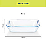 Borosil Glass Rectangular Baking Dish - Transparent, Microwave & Freezer Safe, 1.5 L (1 pc)