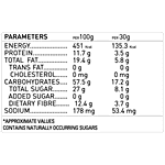 Dates, Roasted Peanuts (25%), Green, Black Raisins, Pumpkin Seeds, Peanut Butter (6%), Cashew Nuts, Coconut Desiccated, Himalayan Pink Salt, Vitamin E (Contains Nature-identical Flavouring Substance: Vanilla).