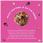Dates, Green, Black Raisins, Pumpkin, Sunflower Seeds, Almonds, Cranberries, Blueberries, Goji Berries, Cashew, Pistachio, Pea Protein Isolate, Honey, Himalayan Pink Salt, Vitamin E (Contains Nature-identical Flavouring Substances: Berry)
