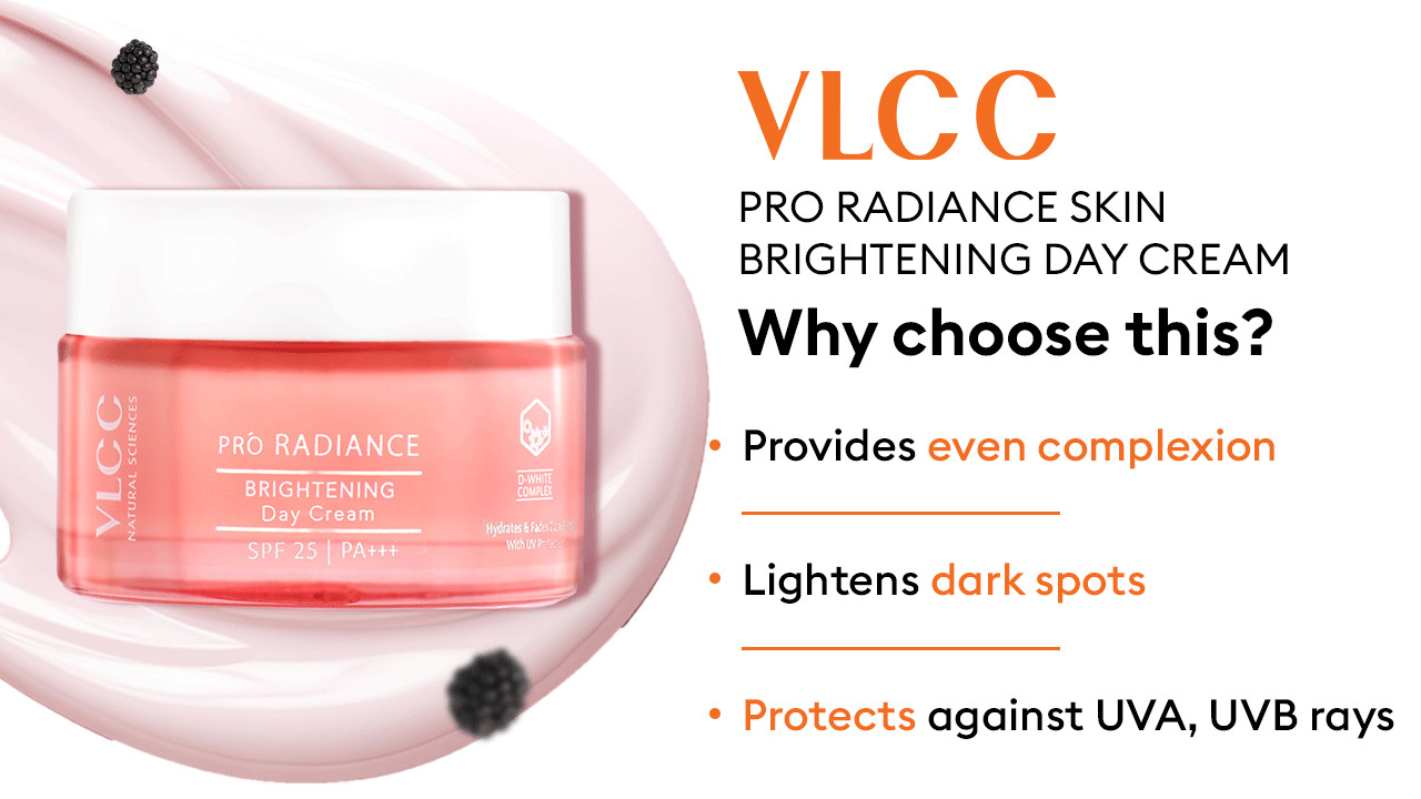 VLCC Pro-Radiance Brightening Day Cream is a skin rejuvenating and restoring cream with an effective formula that protects and nourishes your skin from deep within. Formulated with a unique D-White Complex, the day cream helps protect and healing the skin from damage, controls the occurrence of dark spots, brightens the skin, and helps fade sun damage. Enriched with natural fruit extracts of Mulberry & Nutmeg Oil, the day cream effectively reduces melanin production and brightens & lightens the skin tone with SPF 25, along with PA+++ protection against UV rays.