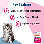 Kitty Yums is a unique kitten food recipe formulated with high-quality ocean fish, such as sardines and mackerel. This meal with more meat and less grain provides your cats with a high protein for stronger bones and muscles. Enriched with omega fatty acids, taurine, prebiotics, probiotics and calcium supports the complete growing needs and overall vital system. With no soy, corn or wheat, it is a complete and balanced meal to nourish your pet kitten.