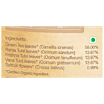 Green Teas Leaves (58.00%), Rama Tulsi Leaves (13.67%), Krishna Tulsi Leaves (13.67%), Vana Tulsi Leaves (13.67%) And Saffron Threads (0.99%)