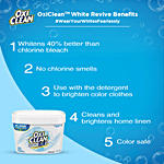 OxiClean White Revive Laundry Whitener + Stain Remover give your whites a new take on life! This chlorine-free formula is color safe and works with your detergent to remove stains and brighten and whiten your clothing. It has 40% more whitening power per load than chlorine bleach. Add it to every load of laundry or you can even dissolve some in water to pre-soak. OxiClean offers a wide array of products to fit all your stain removal needs. The OxiClean family has grown to include stain removers, pre-treaters, laundry detergent, and much more!