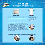 Add OxiClean White Revive to every load. Standard Machines: Add OxiClean White Revive Laundry Whitener + Stain Remover with your favourite detergent before adding laundry. Heavy Machines: Add detergent into dispenser. Add OxiCleanTM White Revive Laundry Whitener + Stain Remover directly into drum BEFORE adding laundry. For regular loads fill to Bar B. For larger loads or extra whitening, add more. Enjoy, white & bright laundry with OxiClean White Revive Laundry Whitener + Stain Remover.