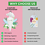 A Organic Air Freshener made with the goodness of camphor. The refreshing fragrance elevates your mood and even repels mosquitoes. Hang in your cupboard, car, wardrobe and washroom to experience a freshener in the true sense of its word.