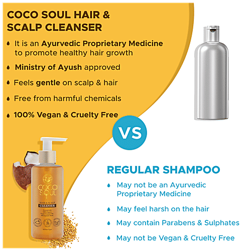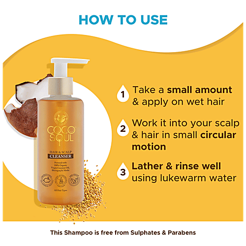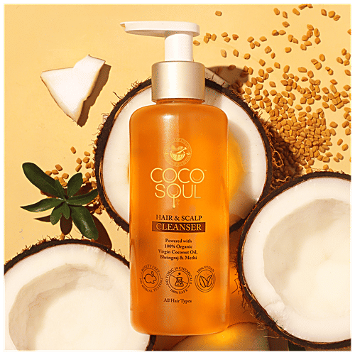Coco Soul Hair & Scalp Cleanser/Shampoo - With Virgin Coconut Oil, Bhringraj & Methi