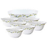Larah by Borosil Opalware Pudding Set - Cripper, Elegant Design, Freezer Safe, Non-Staining, White, 7 pcs