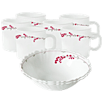 No Question askedLarah by Borosil Opalware Snack Set - Verona, Elegant Design, Freezer Safe, Non-Staining, White