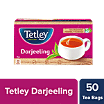 Tetley Darjeeling Black Tea - Light Bodied Blend, Staple-Free Environment Friendly Bags, 100 g ( 50 Tea Bags x 2 g Each)