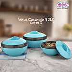 Asian Venus Plastic Casserole Set - Keeps Food Warm For A Long Period, Blue Colour, 3 pcs