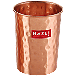 With their polished exterior and durability, the HAZEL Hammered Finish Copper Glasses are perfect additions to your dining ritual. Made with premium copper, these 300 ml glasses were designed to impress. Use them to serve guests at dinner parties, for cocktails and other drinks. Their sturdy build ensures that they last a lifetime, if taken care of properly. Clean them regularly to remove any dark oxidation marks and you're good to go. Explore the full range of HAZEL products, from tiffin containers to cups and saucers, only on Big Basket.