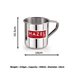Hazel Stainless Steel Mug - Multipurpose, For Home Daily Use, Strong & Sturdy, Silver, 650 ml