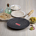 Hazel Pure Iron Concave Chapati/Parantha Tawa - With Wooden Handle, 29 cm, 1 pc
