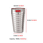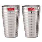Hazel Stainless Steel Jumbo Water/Lassi Glass - Stripped Design, Traditional, Durable, For Everyday Use, 750 ml (Set of 2)