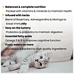 - Growing felines need strong digestion and that's how our probiotics and prebiotics work overtime to maintain a good gut with barely any stomach upsets - Strong immunity boosting herbs like rosemary, ashwagandha and moringa are packed with antioxidants that fight diseases like a pro