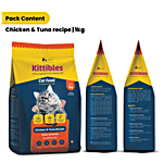 - Kittibles Cat Food Chicken & Tuna Recipe is a perfect blend of real meats that provide essential proteins, carbohydrates, vitamins & minerals to ensure healthy and optimum growth of your feline over 1 year of age
