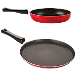The Nirlon Fry Pan and Flat Tawa set is a practical choice for anyone looking to purchase a cookware set that's safe and increases the functionality of your kitchen. The Fry Pan and Flat Tawa set is a combo deal, both made from pure food grade aluminium making it long-lasting and safe to use. The Flat Tawa and the Fry Pan comes with triple-layer non-stick coating, which lets you prepare great food with minimum oil or ghee. With a stylish red exterior and black interiors, this combo is sure to elevate your kitchen. Explore the entire range of Nirlon cookware, from the non-stick kadhai to the flat fry pan and induction cookware only on Big Basket.