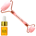 Natural Vibes Rose Quartz Massager and Roller is made with natural stone that contains minerals. Our Roller comes with 2 precisely sized stones, the bigger roller is perfect for your face, forehead and neck while the smaller roller will work wonders for your under-eye area, nose and lips. Rose Quartz is believed to have calming and healing effects on one's mind and body, especially when used with the right serum or oil. This beautiful stone has been an essential part of traditional Chinese skincare regimes for centuries. Our carefully crafted face roller will help you reduce puffiness, tone and tighten your skin. It also aids in the removal of toxins and facilitates blood circulation. It will unclog the congested lymphatic nodes, thereby leaving your skin with a natural glow, not to forget how smooth your skin will feel post this quick self-care regime. Furthermore, it will relieve the stress that sometimes builds up in your face muscles. Relaxing these muscles will bring back your natural glow. Using our roller will also increase the effectiveness of the serums or oils that you may use for massaging. Natural Vibes Roller comes with complimentary gold beauty oil that will work wonders on your skin and also endow you with peaceful sleep along with glowing skin. This carefully formulated elixir with 24 karat gold flakes is a blend of ingredients that have been integral in Ayurveda for generations such as Rosemary, Orange Peel, Tea tree, Patchouli, Chamomile, Rose, Pomegranate, Sandalwood, Lavender, Rosehip, Saffron, Lemongrass and Olives. Rich in vitamins, antioxidants and essential oils, our beauty oil will make your skin glow naturally, while visibly improving your skin's complexion. This lightweight oil, with the help of our roller will seep through your skin, hydrating and nourishing your cells with the missing nutrients that cause premature signs of ageing, discolouration and inflammation. The small particles of gold get absorbed into the skin imparting a rich glow and making your skin look healthy, fresh and much younger.