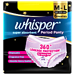 Whisper Super Absorbent Period Panty offers 360 Degree leakage protection* for heavy flow days. Designed with full back coverage and a panty-like fit, it ensures comfort and confidence throughout the day. Soft, snug, and easy to wear, these period panties are a convenient alternative to pads, perfect for worry-free protection. Experience comfort and reliability like never before.
