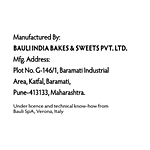 Manufactured & Marketed by: Bauli India Bakes & Sweets Pvt Ltd, Plot # G-146/1, Baramati Industrial Area, Katfal, Baramati, Pune - 413133, Maharashtra