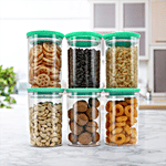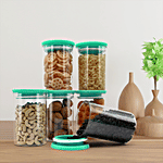 Floraware Airtight Stackable Plastic Storage Containers - Keeps Food Fresh, Green, 900 ml (set of 4)