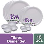 Tibros Aster Series Melamine Dinner Set - Spring Purple Design, Lightweight, Durable, 16 pcs