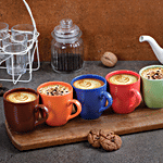 Tibros Ceramic Stoneware 1148 Tea/Coffee Mug - Lightweight, Dishwasher Safe, Multicolour, 110 ml (Set of 6)