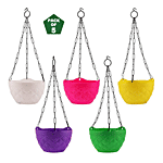 Leafy Tales Diamond Plastic Hanging Pots - With Chain, For Indoor/Outdoor Gardening, Multicolour, 5 pcs